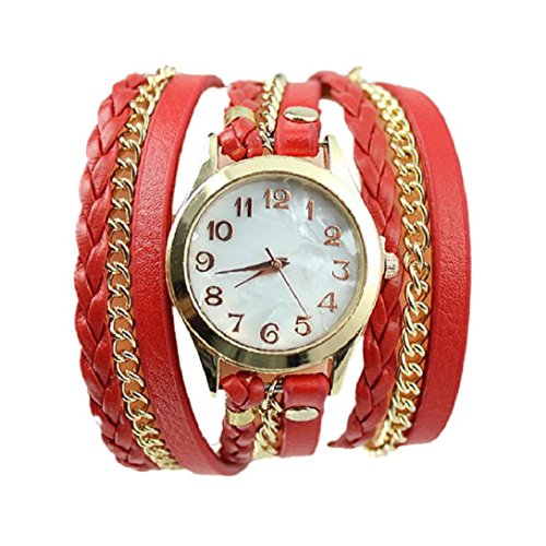 Femme Filles Montre Bracelet, Amison Rétro Punk Rivet Cuir PU Tissage Bracelet Rouge est l’un des les sortes de montre qui pourrait être ainsi un choix pour votre enfant