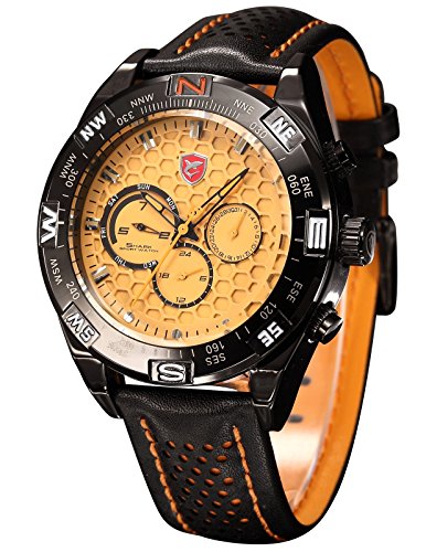 Shark - SH156 - Montre Sportive Homme - Cadran Jaune - Militaire - Date/Jour - Double Affichage - Bracelet Cuir: Amazon.fr: Montres