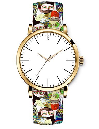 iCreat Montre Quartz Sport Cuir Femme Simple Watch Bijoux Bracelet Fashion Design Avec Owl Yeux Graffiti Cadran Blanc Boîtier Doré est l’un des les trie de montre qui pourrait être ainsi un choix pour votre enfant