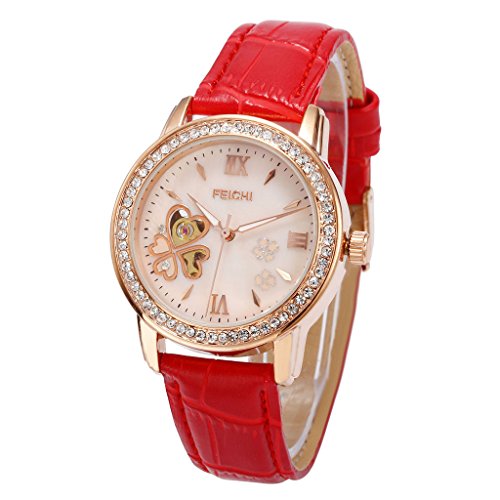 Infinite U Rose Cadran avec Strass Trèfle à Quatre Feuilles Femme Bracelet en Cuir Rouge Remontage Automatique Mouvement Mécanique Montre pour Cadeau d'anniversaire est l’un des les types de montre qui pourrait être ainsi un option pour votre jeune