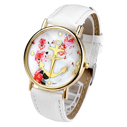 JSDDE Ancre Montre à Quartz Analog Bracelet en Cuir Cadran motif Fleur Mode Femme et filles (Blanc) est l’un des les sortes de montre qui pourrait être ainsi un alternative pour votre jeune