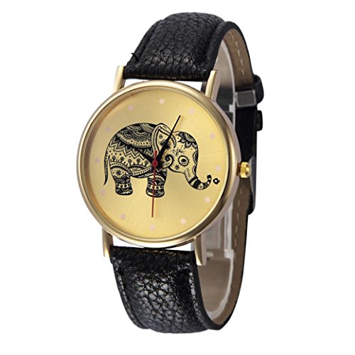 Fulltime(TM) Motif d'éléphant Mode Montres à Quartz Analogique Bande Noir de PU Cuir est l’un des les trie de montre qui pourrait être ainsi un option pour votre jeune