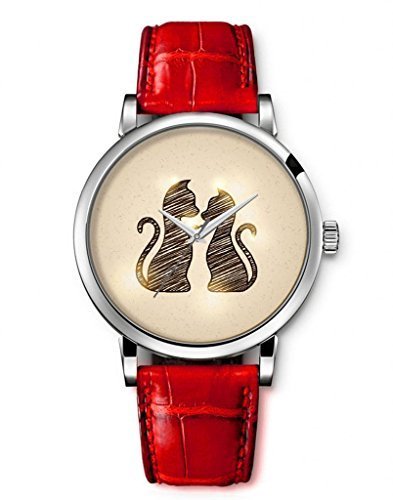 Montre Femme Quartz Bracelet Cuir Rouge ... Femme Quartz Bracelet Cuir Rouge Etanche - Chats Amoureux Mignon. ... iCreat Montre Femme Quartz Bracelet Cuir Rouge ...