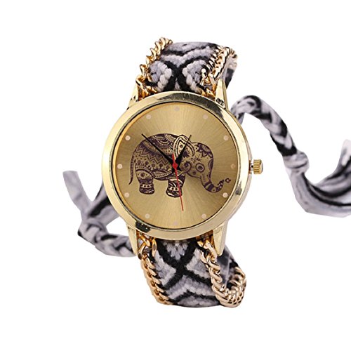 Femme Filles Montre Bracelet, Amison Rétro Ethnique Éléphant Corde Tissée Montre Noir est l’un des les trie de montre qui pourrait être ainsi un choix pour votre kid