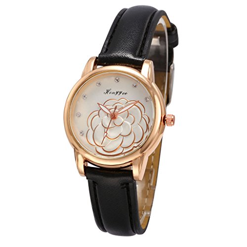 Infinite U Camélia Elégant Brillant Strass avec Bracelet en Cuir Noir Femme Montre Quartz pour Cadeau d'anniversaire est parmi les trie de montre qui pourrait être ainsi un alternative pour votre kid